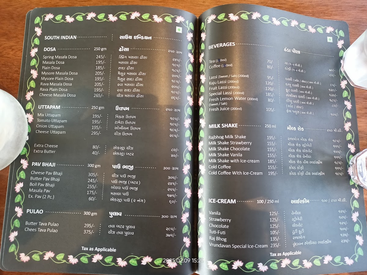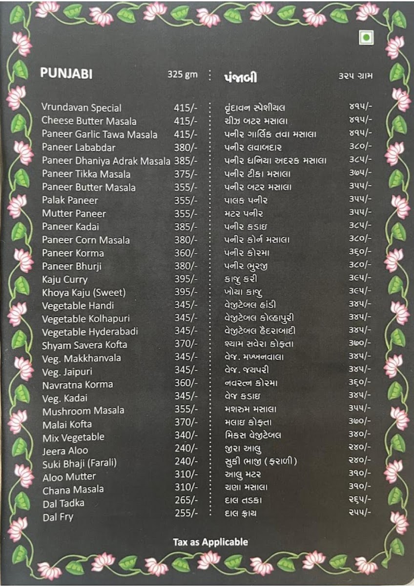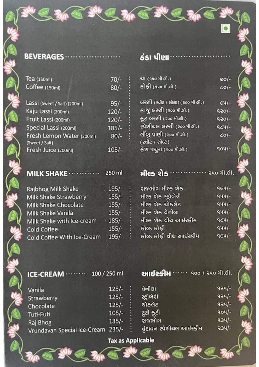 Welcome to Vrundavan Garden Restaurant, a gem nestled in Gandhinagar, Gujarat. This vibrant establishment offers an exquisite menu, primarily focusing on authentic Gujarati cuisine. As you explore the offerings, prepare to indulge in delightful starters like Bajri Na Vada and Dhokla, both showcasing rich traditional flavors. The main course dazzles with dishes such as Daal Baati and Bhindi Masala, each prepared with an authentic touch that highlights the essence of Gujarati cooking.